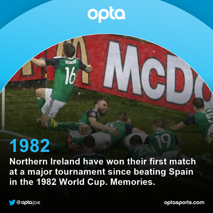 1982 - #NIR have won their first game at a major tournament since beating Spain in the 1982 World Cup. Memories.